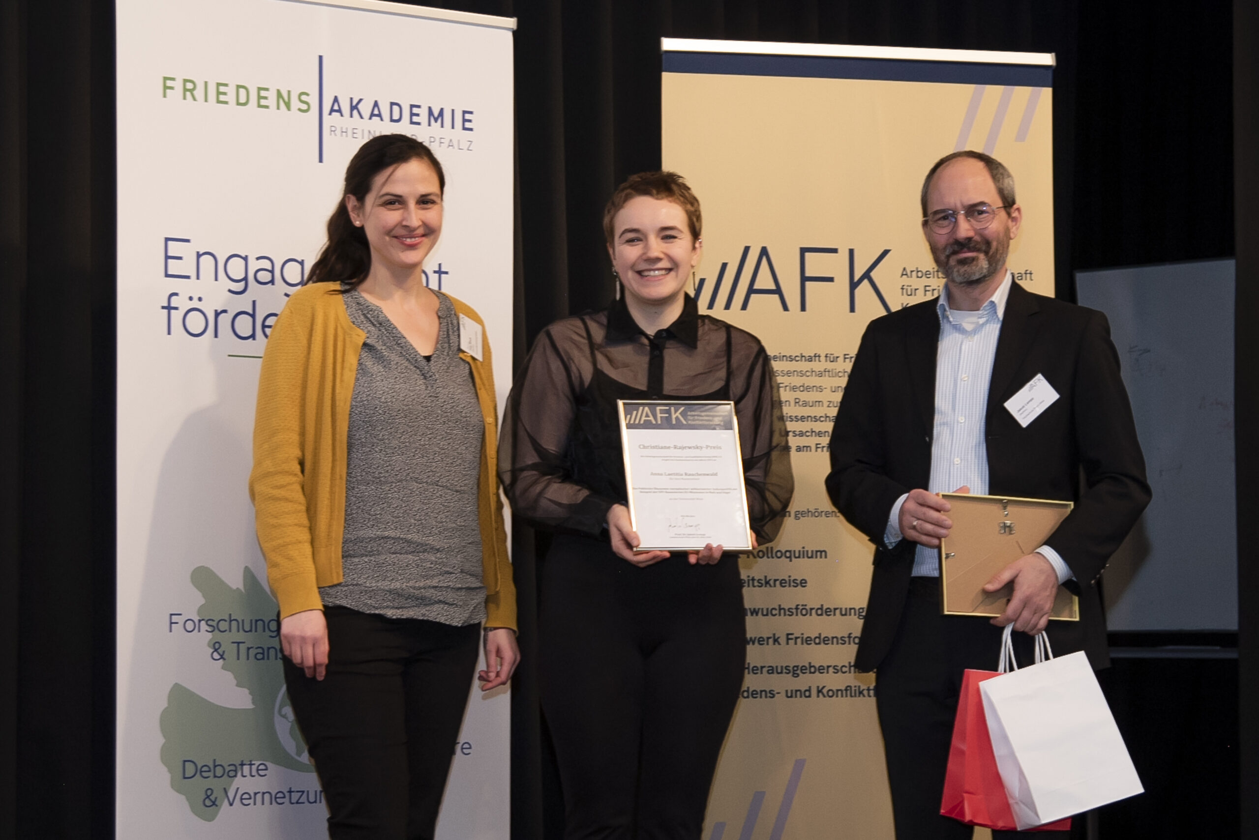 Der Christian-Rajewsky-Preis (CRP) würdigt herausragende Abschlussarbeiten in der Friedens- und Konfliktforschung. Ausgezeichnet werden Masterarbeiten und Dissertationen, die im laufenden oder vergangenen Kalenderjahr in deutscher oder englischer Sprache verfasst wurden....